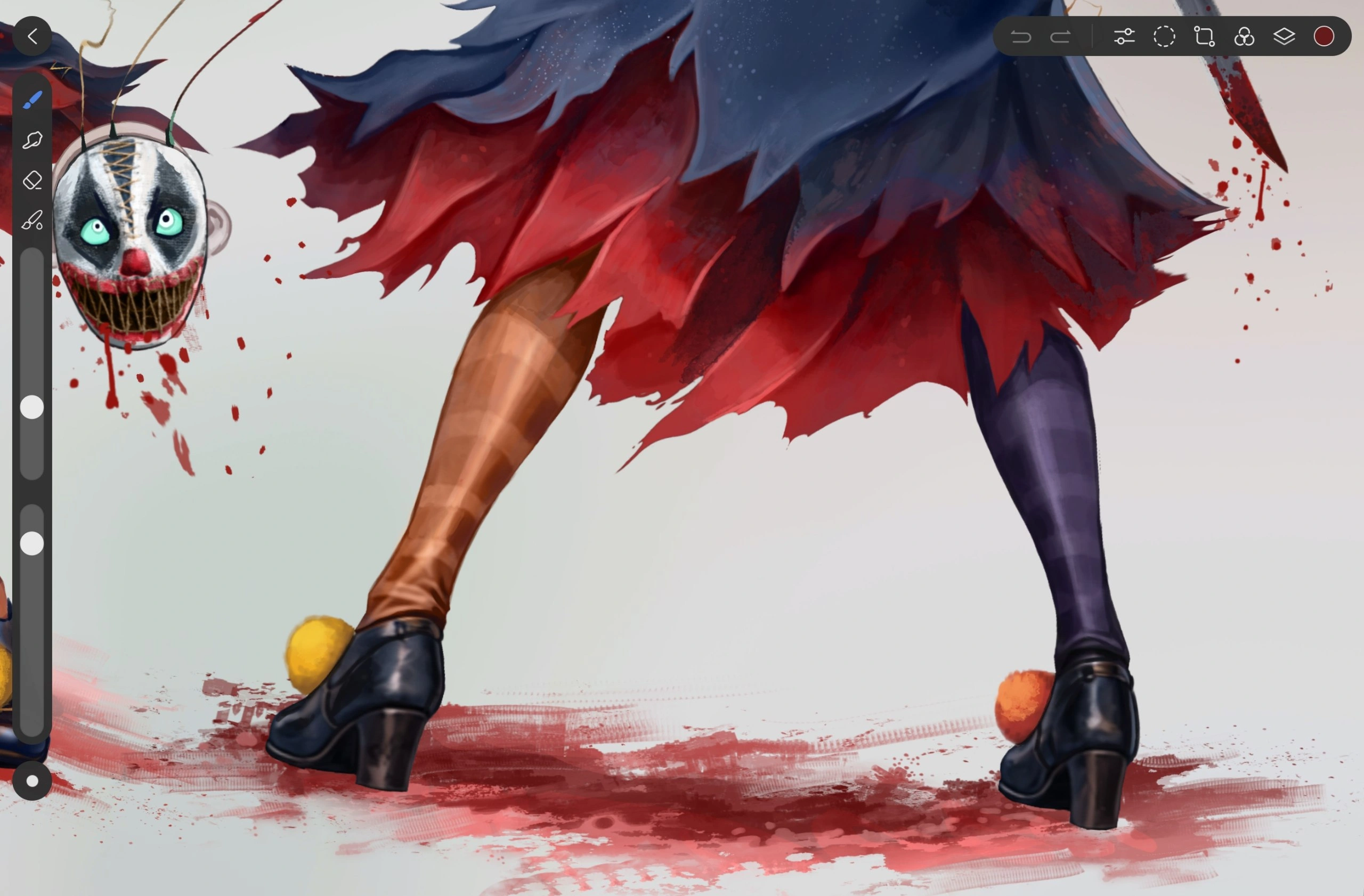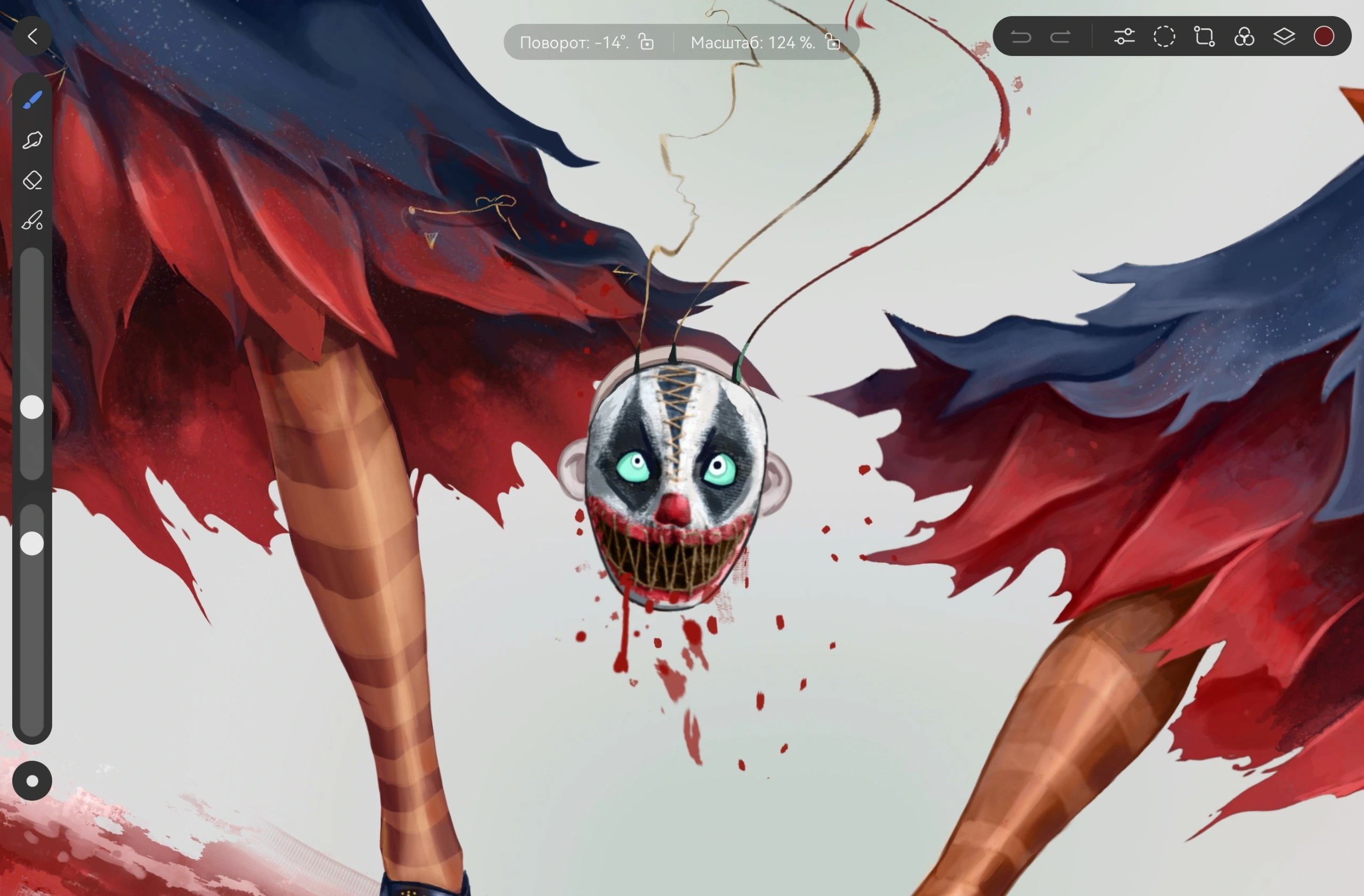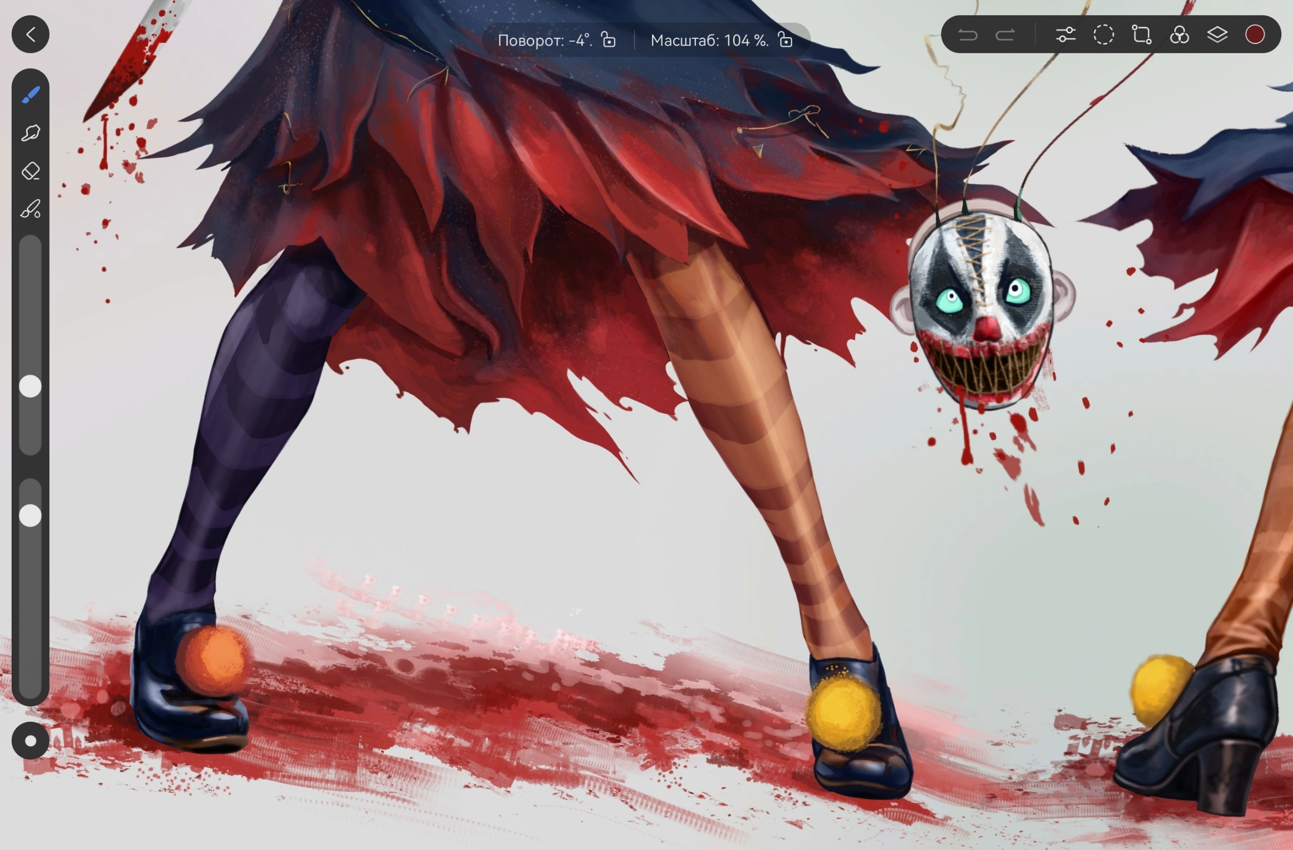 До и ПослеФинальный результат: добавлен окровавленный нож, левитирующая голова и рваный край юбки для атмосферы.