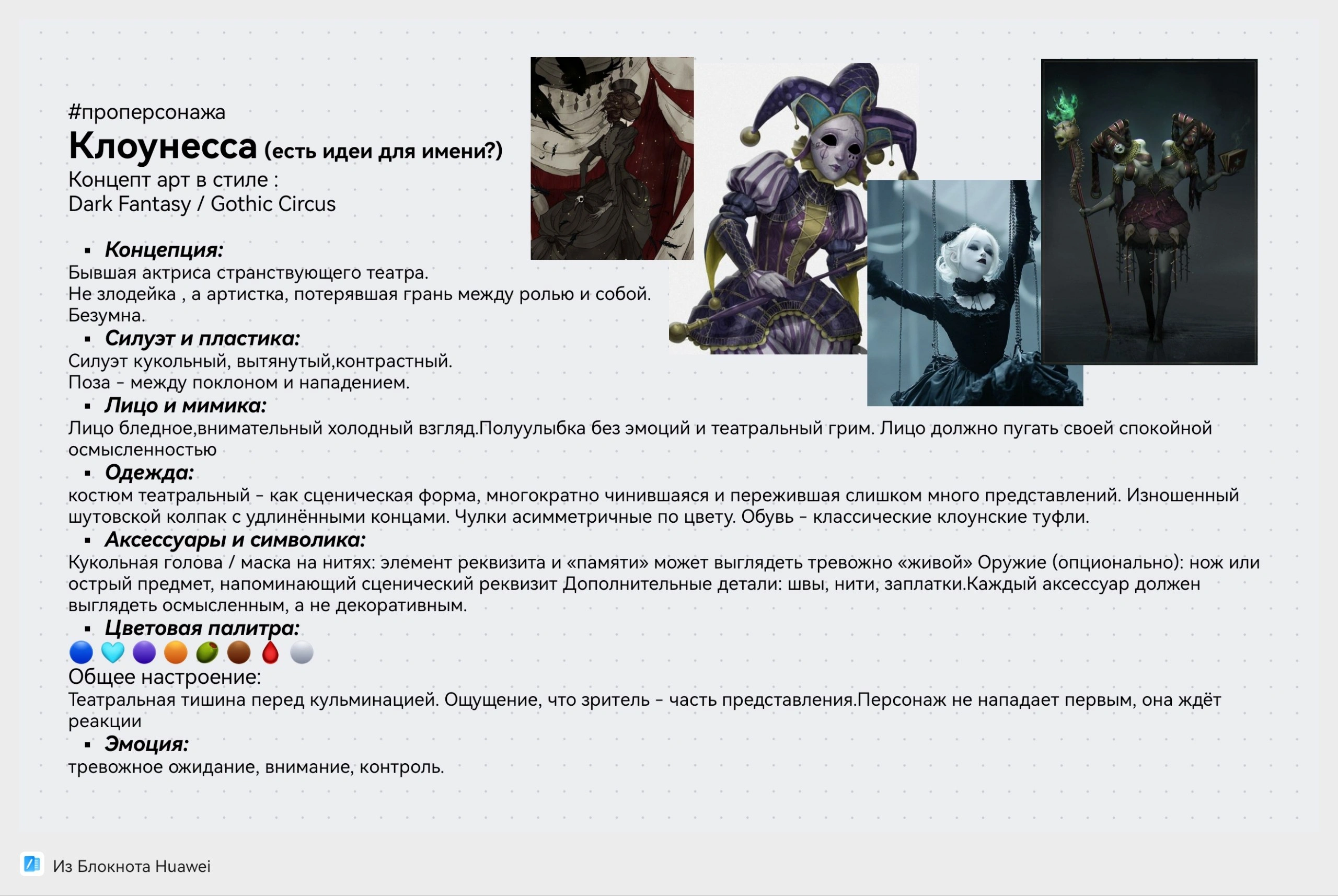 Концепция и мудбордЯ выбрала стилистику Dark Fantasy и Gothic Circus. В мудборде собраны референсы: кукольные пропорции и театральный грим.