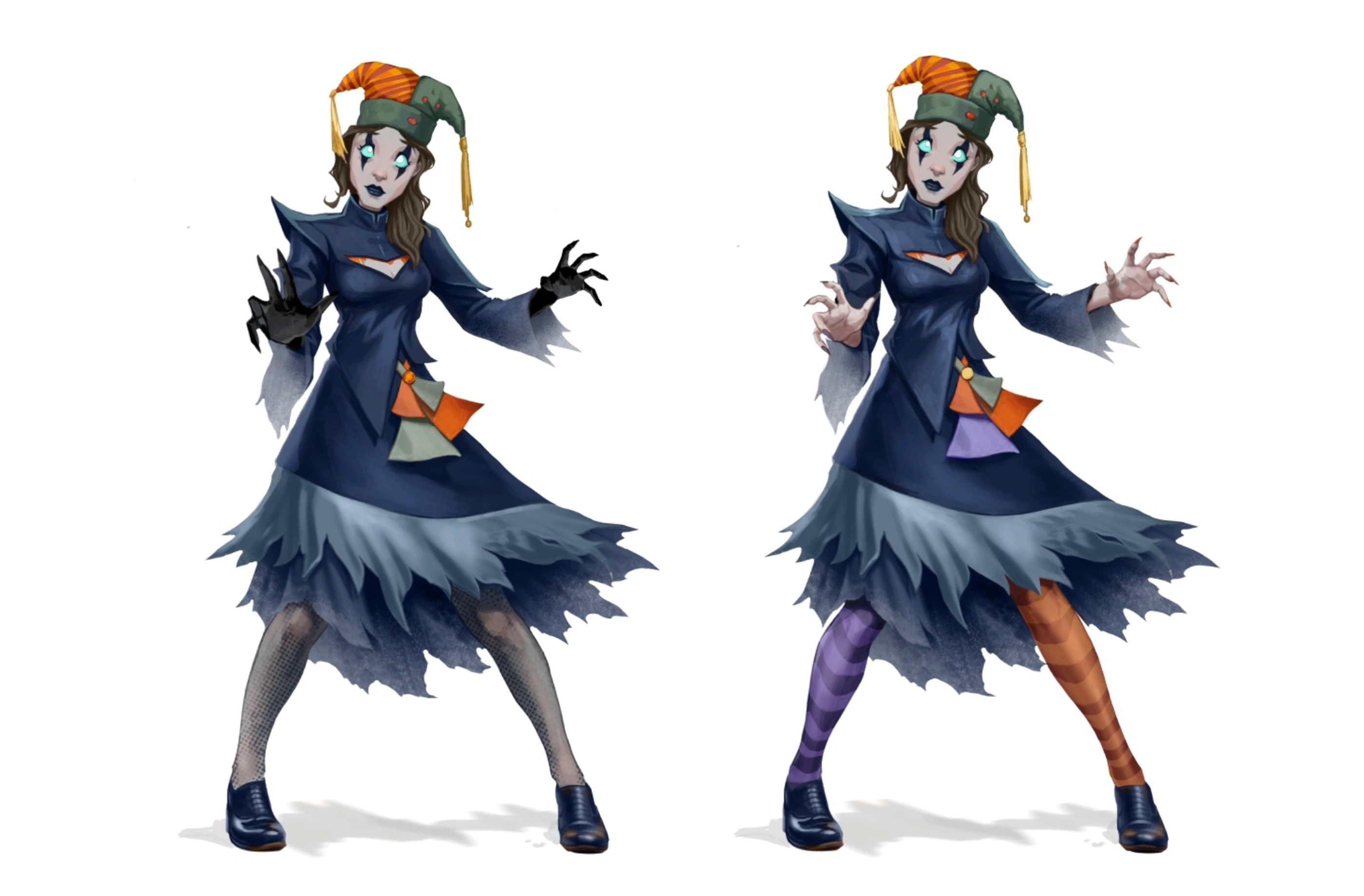 Варианты костюмаВыбор между сеткой и асимметричными полосатыми чулками. Полоски лучше подчеркивают безумие образа.