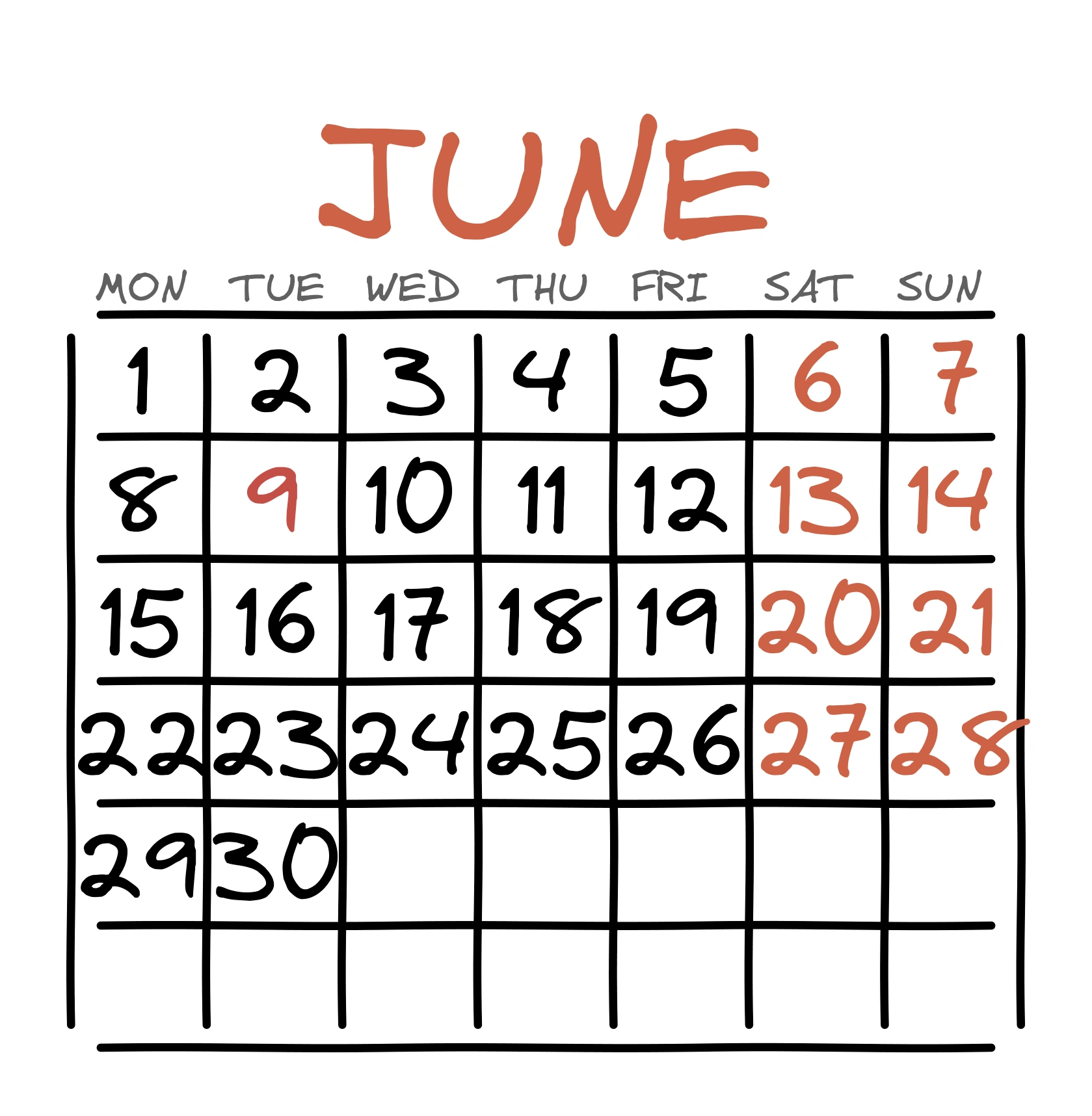 Календарь Июнь (Солнечно-оранжевый)