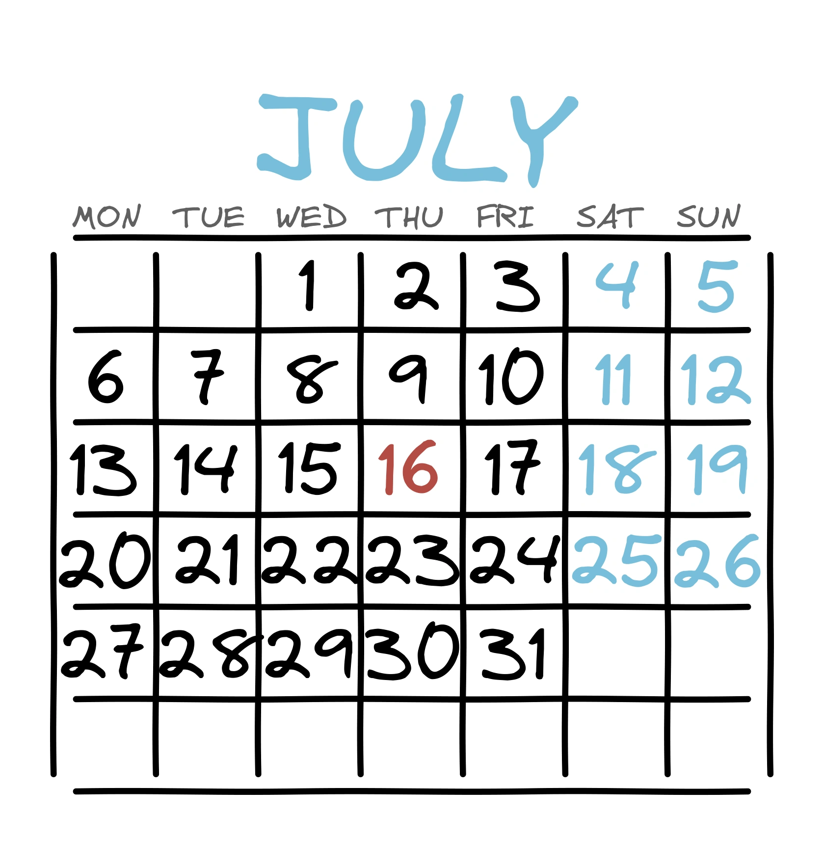 Календарь: Июль (Инфографика предпочтений)