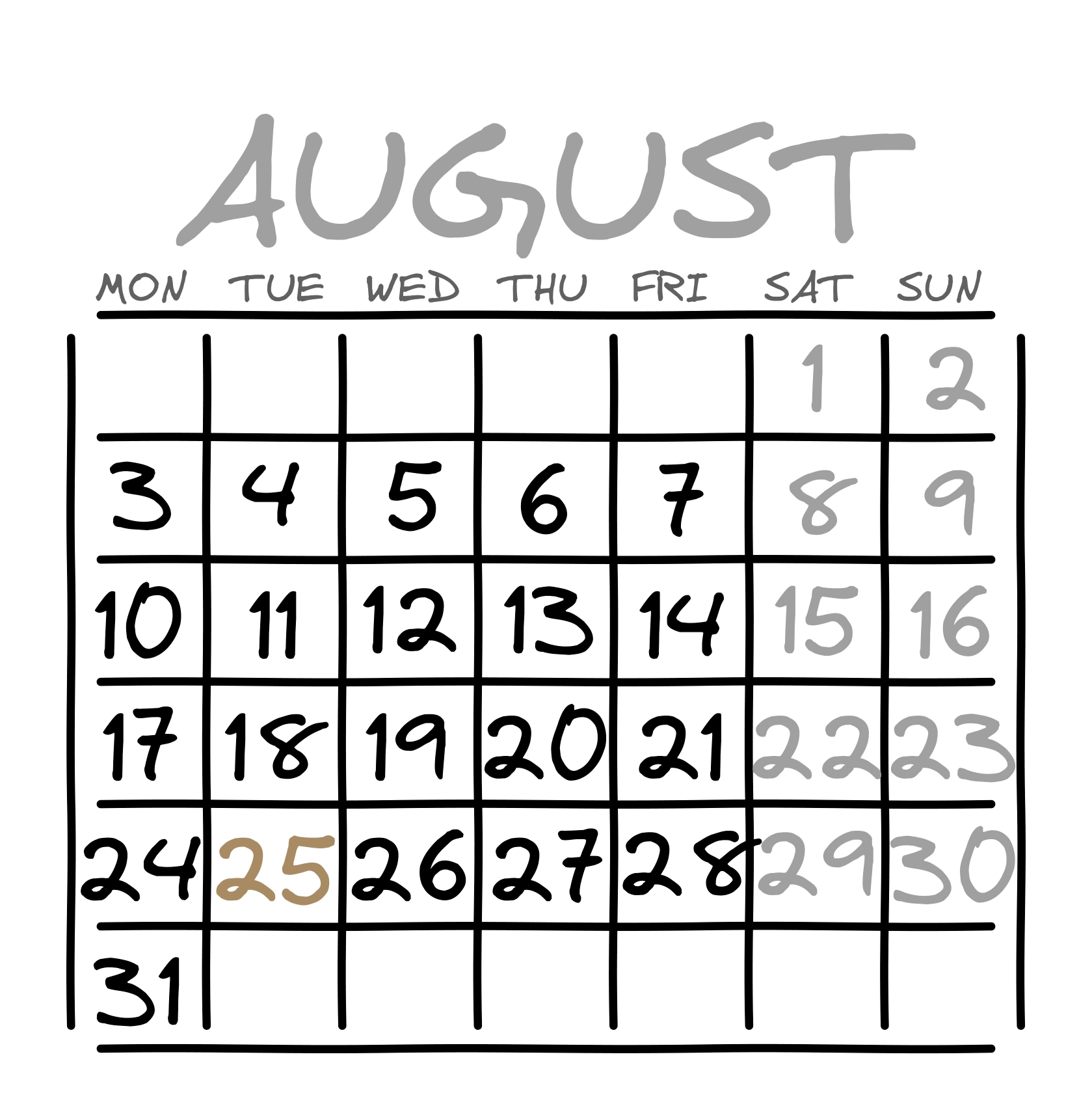 Календарь: Август (Серый)