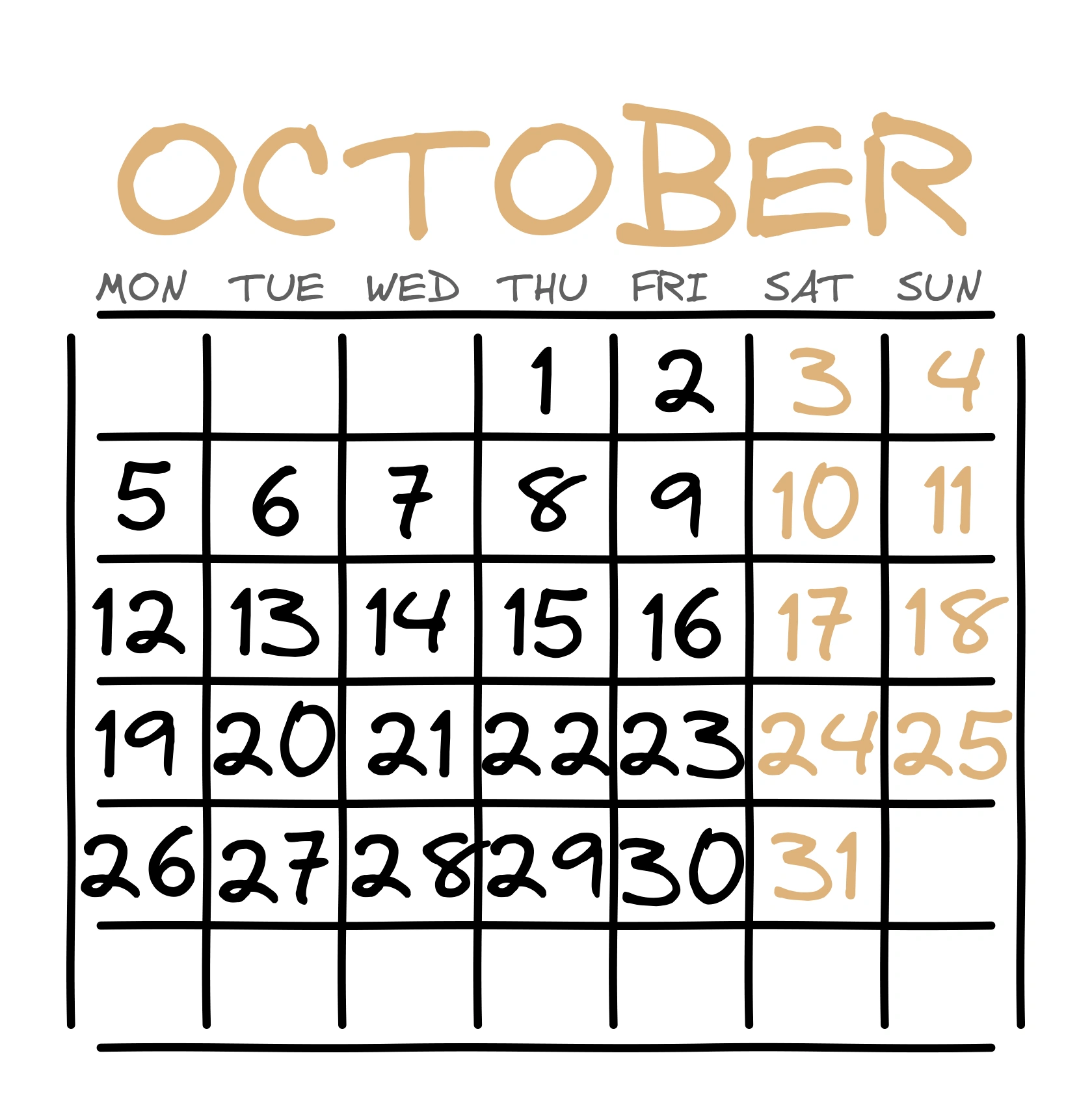 Календарь: Октябрь