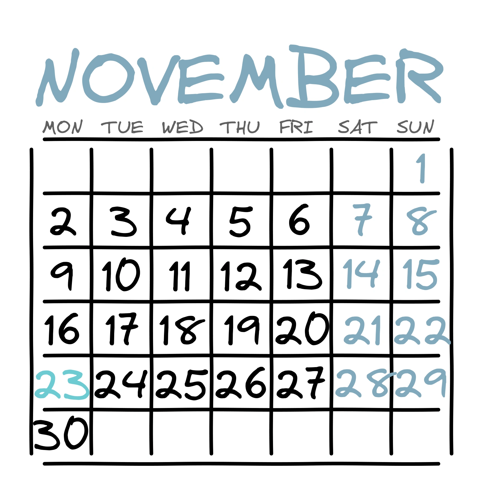Календарь: Ноябрь (Белый стиль)