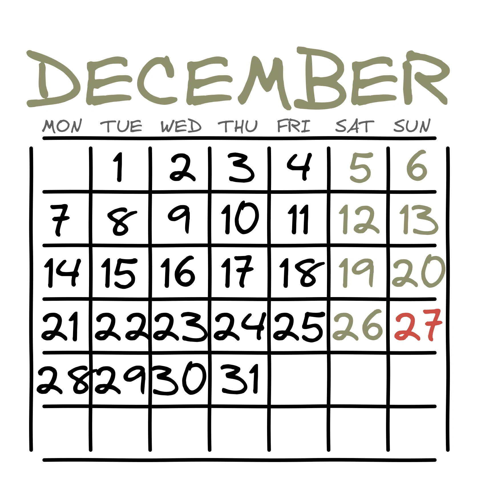 Календарь Декабрь(Зеленый в честь ухода этого игрока на службу в армию)