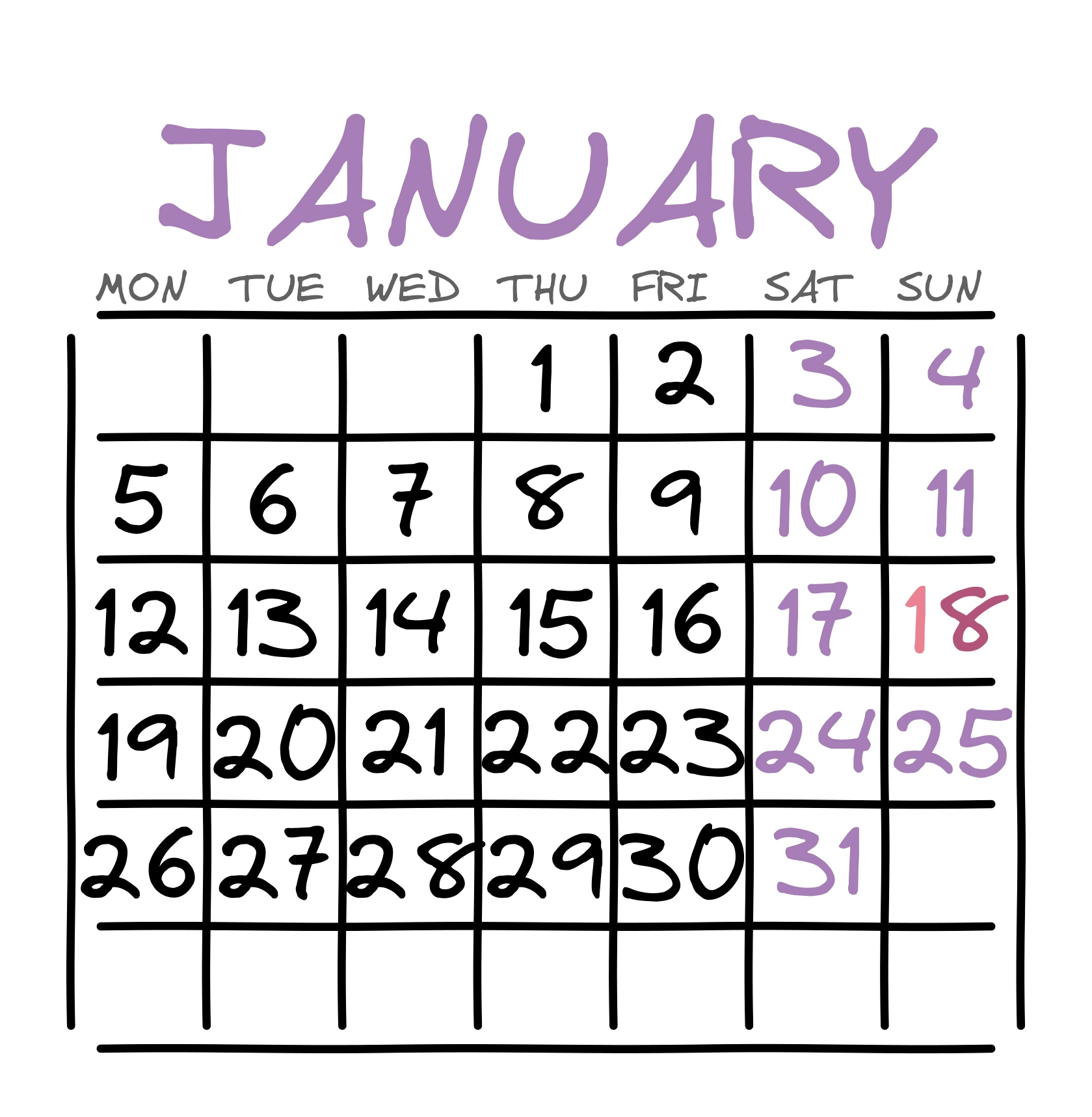 Календарь: Январь (Лаванда)