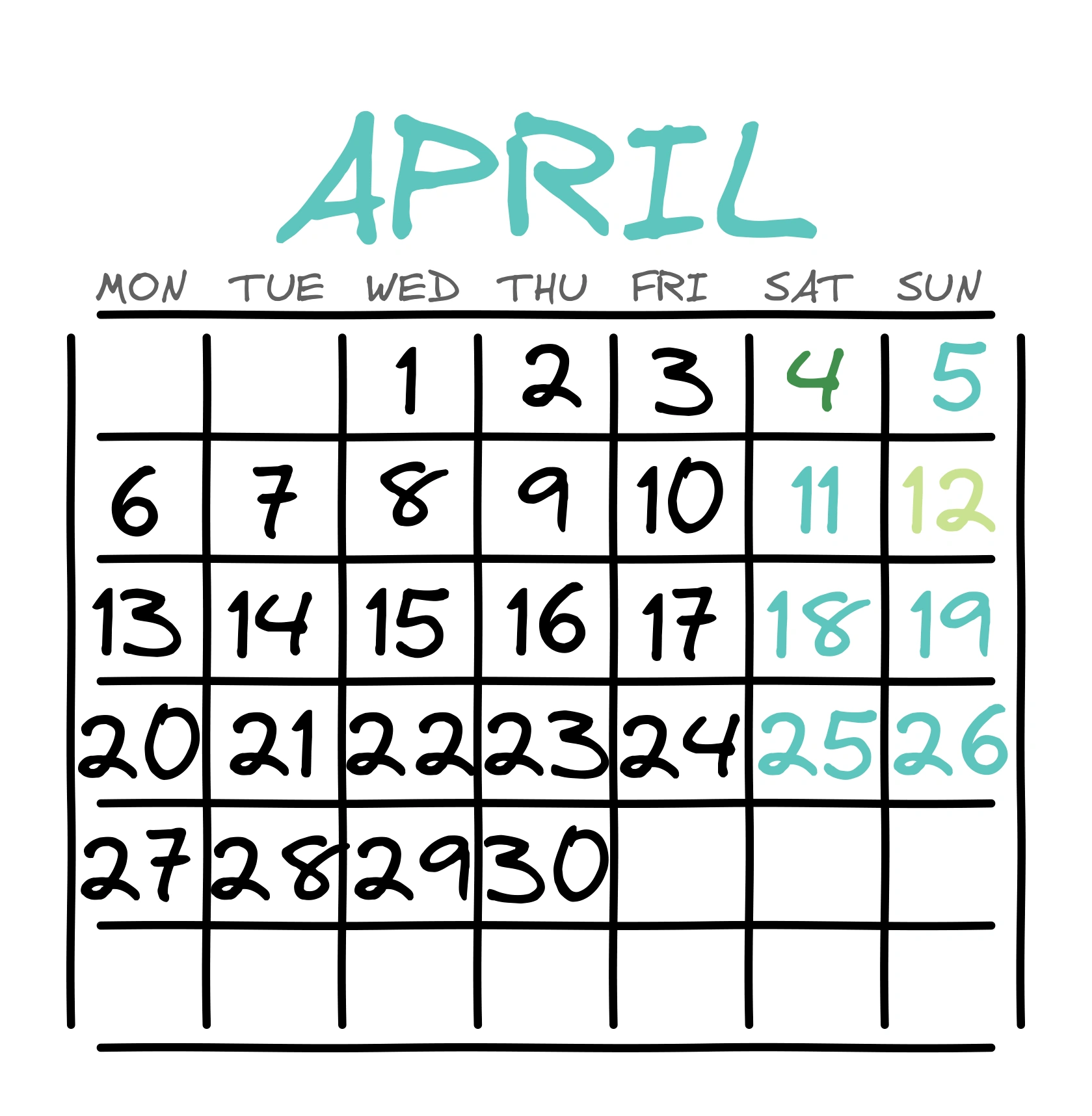Календарь: Апрель (Бирюза)